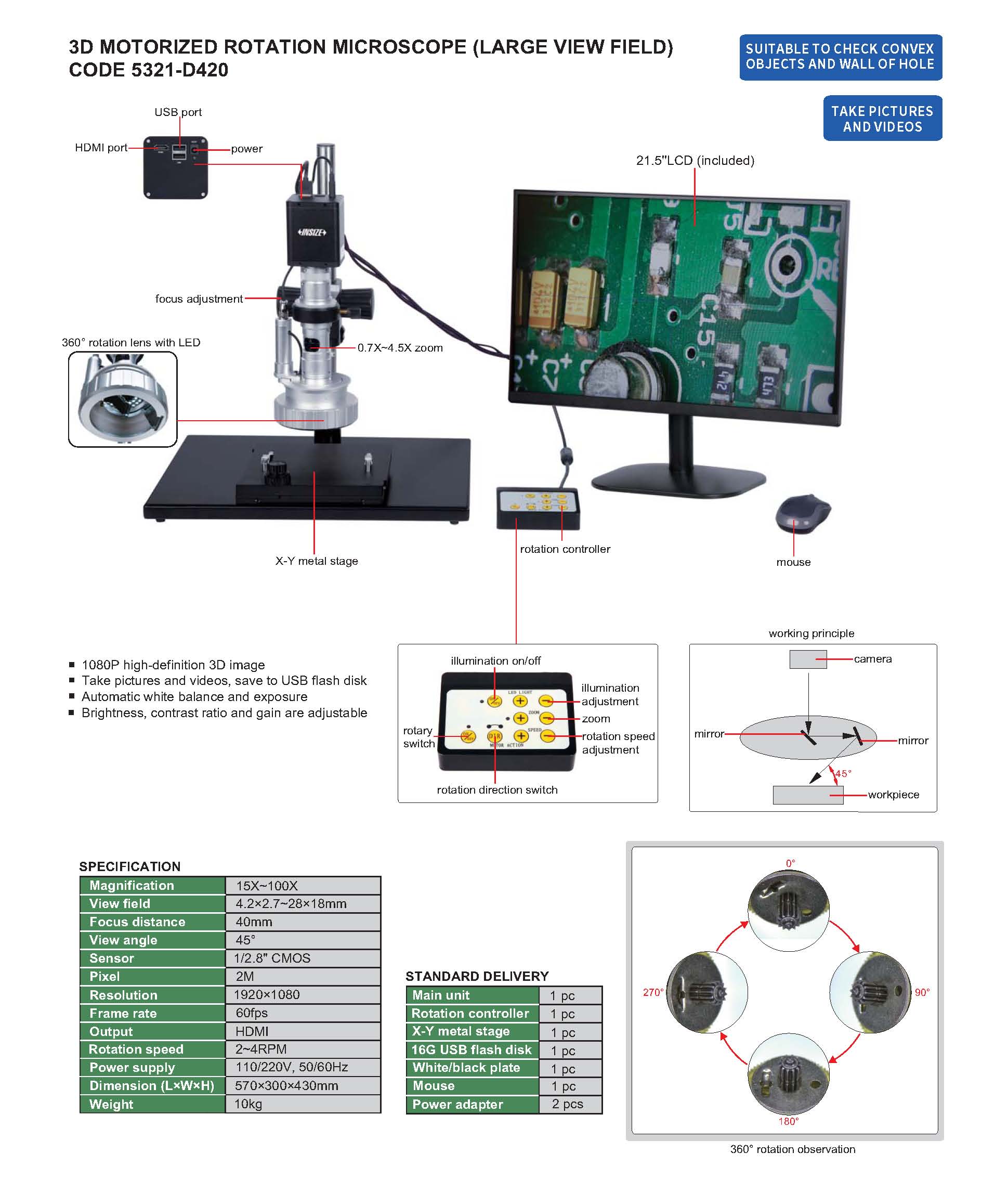 3D Motorized Rotation Microscope (Large View Field)